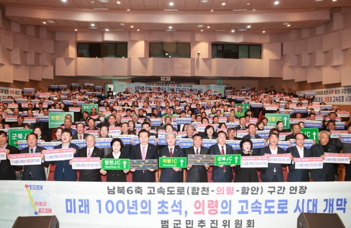 [뉴스다컴] 의령군은 24일 의령군민문화회관에서 ‘남북6축 고속도로 합천–의령–함안 구간 연장 범군민 추진위원회 발대식 및 결의대회’를 열고 고속도로 연장 사업 추진을 공식 선언했다.