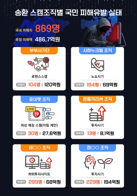 | ▲ 송환 스캠조직별 국민 피해유발 실태 |
