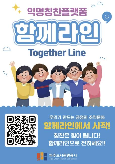[뉴스다컴] 파주도시관광공사는 직원과 고객이 함께 참여하는 스마트 익명 칭찬 플랫폼 ‘함께라인(Together Line)’을 12월 초부터 도입했다.
