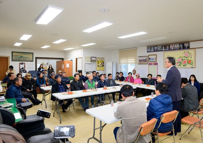 [뉴스다컴] 오순문 서귀포시장은 11월 18일 민생현장 방문으로 서귀포 해오름주간활동센터, 세화2리 경로당 그리고 양식어류 배합 사료공장인 대봉엘에프 영어조합법인을 차례로 방문했다.