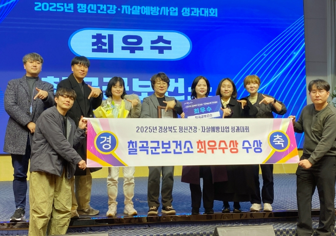 [뉴스다컴] 칠곡군은 지난 8일 구미 호텔금오산에서 열린 ‘2025년 경상북도 정신건강·자살예방사업 성과대회’에서 “최우수상”을 수상했다.