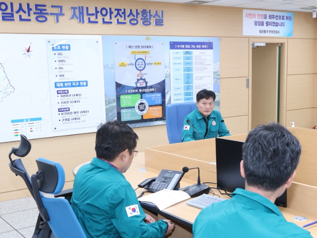 이날 박노선 일산동구청장은 휴가 일정을 취소하고 재난상황실을 찾아 피해 상황과 복구 진행 현황에 대한 보고를 받은 뒤 즉시 현장점검에 나섰다.