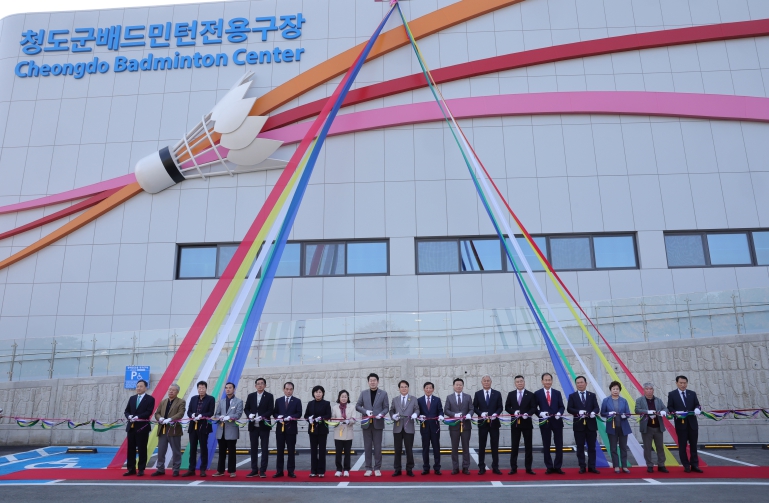 [뉴스다컴] 청도군은 지난 13일 박성곤 청도군의회 부의장, 관련 단체 관계자 및 주민 등 200여 명이 참석한 가운데 군민들의 건강한 스포츠 여가활동 지원을 위해 추진한 청도군 배드민턴 전용구장의 준공식을 개최했다.