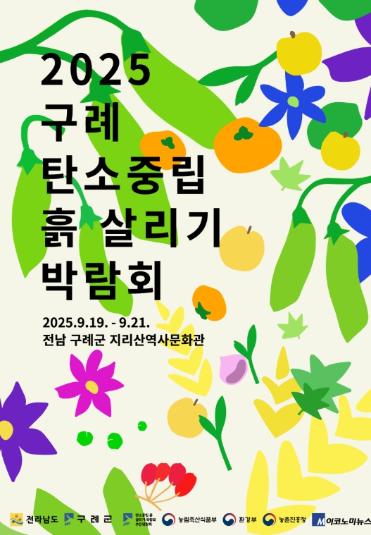 [뉴스다컴] 전남 구례군은 오는 9월 19일부터 21일까지 3일간 지리산역사문화관 일원에서 ‘2025 구례 탄소중립 흙 살리기 박람회’를 개최한다.