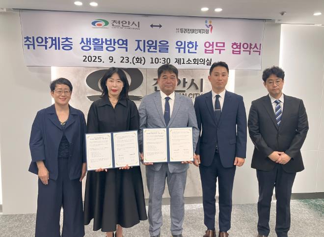 [뉴스다컴] 천안시는 (사)두리장애인복지회와 ‘취약계층 생활방역 서비스 업무협약’을 체결하고 무료 생활방역 지원 대상을 저장강박 의심가구까지 확대한다고 23일 밝혔다.