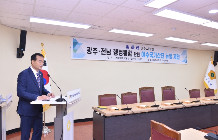 [뉴스다컴] 광주·전남 행정통합 논의가 본격화되는 가운데 송하진 여수시의원(무소속·미평·만덕·삼일·묘도 지역구)이 통합의 전제 조건으로 여수국가산단을 중심으로 한 전남 동부권 산업 뉴딜을 공식 제안했다.