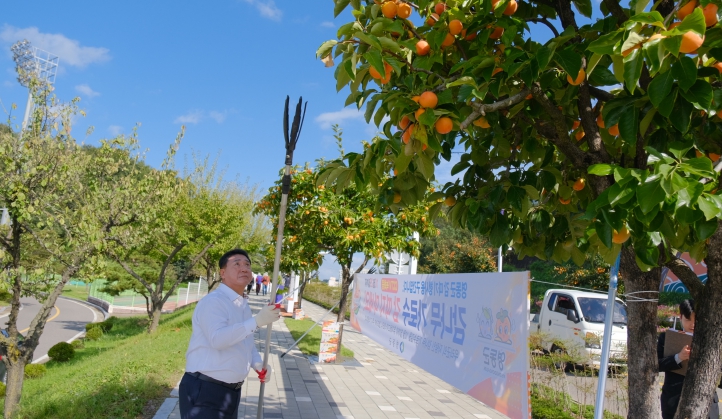 [뉴스다컴] 충북 영동군이 주홍빛으로 물든 감나무 가로수길에서 가을의 풍요로움과 지역의 정겨운 향기를 함께 나누는 가로수 감 따기 행사를 열었다.
