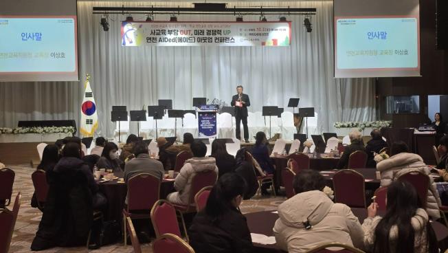 [뉴스다컴] 경기도연천교육지원청은 12월 3일 백학자유로리조트에서‘2025 사교육 부담 OUT, 미래 경쟁력 UP–연천 AIDed 아웃업(OUT-UP) 컨퍼런스’를 개최했다. 이번 행사에는 학부모 100여 명이 참석해 공교육 강화 정책과 학부모 교육에 대한 높은 관심을 나타냈다.