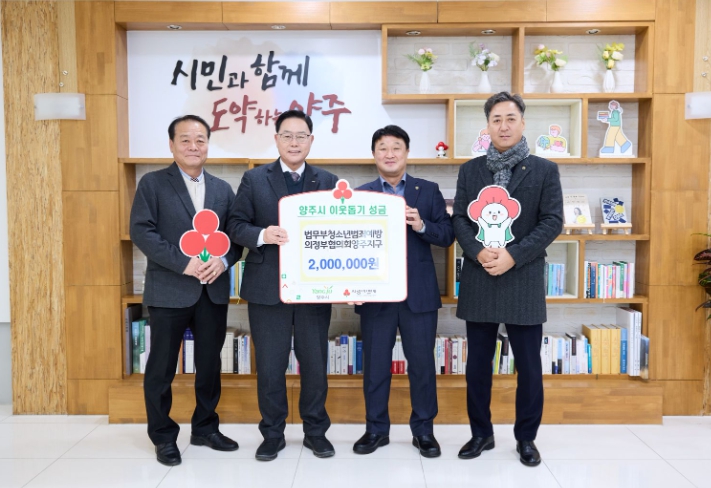 [뉴스다컴] 양주시는 지난 30일 시장실에서 법무부청소년범죄예방 의정부협의회 양주지구로부터 이웃돕기 성금 200만 원을 기탁받았다고 밝혔다.