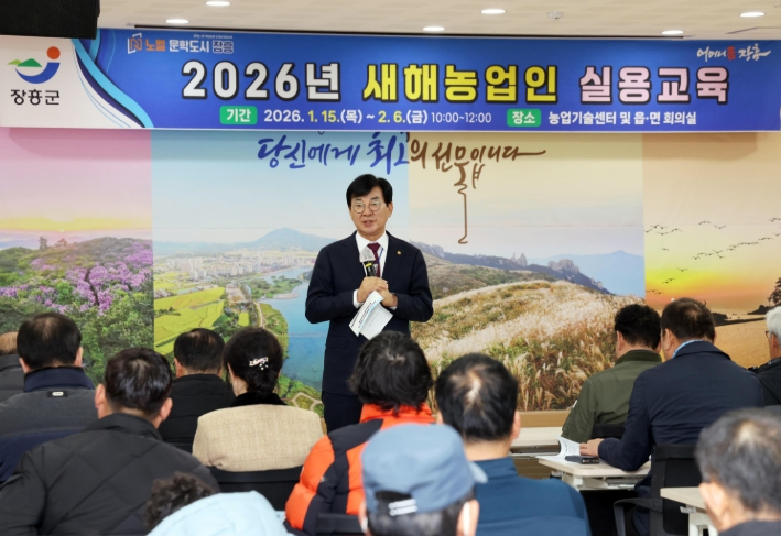 [뉴스다컴] 장흥군은 AI를 활용한 기후변화 대응 영농계획 수립을 내용으로 한 ‘2026년 새해농업인 실용교육’이 농업인들의 높은 관심을 받고 있다고 전했다.