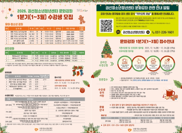 | ▲ [권선] 2026. 문화강좌 1분기(1~3월) 홍보 리플렛 |