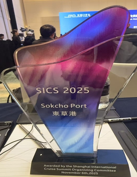 [뉴스다컴] 강원특별자치도와 속초시, 강원관광재단은 11월 6일 중국 상하이에서 열린 '2025 상하이 국제 크루즈 서밋(Shanghai International Cruise Summit)'에서 속초항이 ‘아시아 우수항만상(Emerging Cruise Port Development Award)’을 수상했다고 밝혔다.