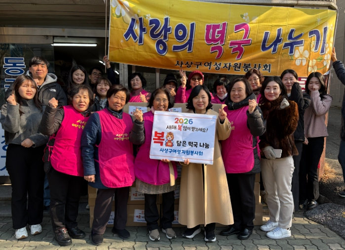 [뉴스다컴] 부산 사상구는 지난 23일 사상구여성자원봉사회가 ‘2026년 복(福) 담은 떡국 나눔’ 행사를 통해 관내 저소득가정 100세대에 떡국떡을 후원했다고 밝혔다.