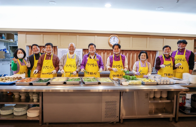 [뉴스다컴] 서울 동대문구는 지난 4일 연화사에서 진행된 '청년밥心' 프로젝트에 이필형 구청장이 배식자로 참여해 청년들과 소통하고 격려의 메시지를 전했다고 밝혔다.
