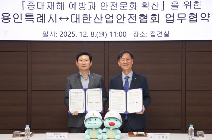 [뉴스다컴] 용인특례시는 8일 시청 4층 접견실에서 대한산업안전협회와 ‘중대재해 예방과 안전문화 확산을 위한 업무협약’을 맺었다.