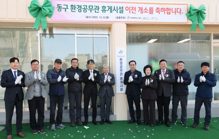 [뉴스다컴] 대전 동구의회는 8일 열린 동구 환경공무관 휴게시설 이전 개소식에 참석해, 새롭게 조성된 휴식 공간의 개소를 축하했다.