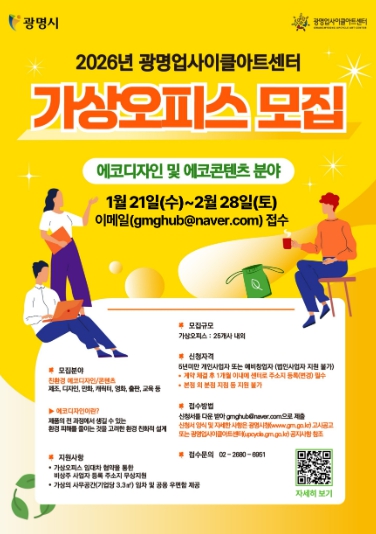 [뉴스다컴] 광명시 광명업사이클아트센터는 오는 2월 28일까지 ‘2026년 상반기 가상오피스 지원사업’ 입주 기업을 모집한다.