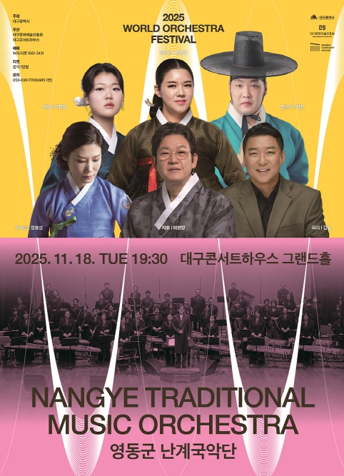 [뉴스다컴] (재)대구문화예술진흥원 대구콘서트하우스는 오는 11월 18일 저녁 7시 30분, 그랜드홀에서 ‘2025 월드오케스트라페스티벌’의 특별한 무대로 ‘영동군 난계국악단’의 공연을 개최한다.