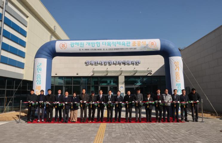 [뉴스다컴] 충북 진천군은 27일 광혜원면 광혜원리 373-1번지 일원에서 ‘광혜원 개방형 다목적체육관’의 준공식을 개최했다.