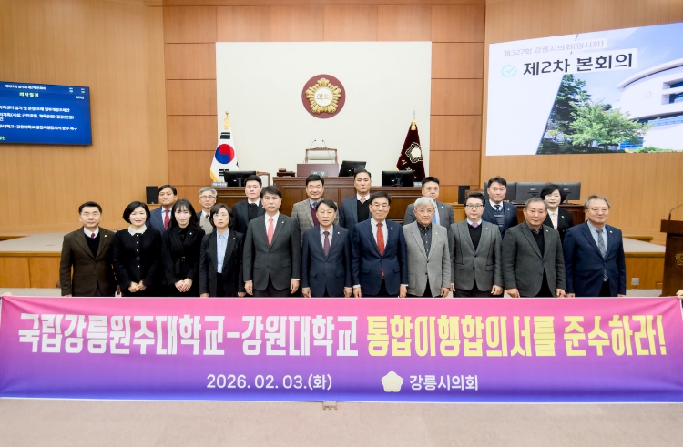 [뉴스다컴] 강릉시의회는 3일 제327회 강릉시의회(임시회) 제2차 본회의에서 조대영 의원의 대표발의로 ‘국립강릉원주대학교-강원대학교 통합이행합의서 준수 촉구 성명서’를 발의했다.