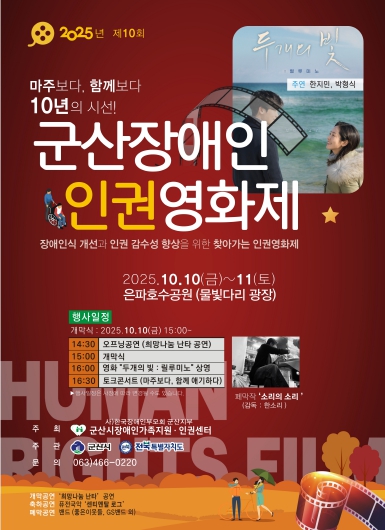 [뉴스다컴] 군산시 장애인가족지원인권센터가 10월 10일부터 11일까지 은파호수공원 물빛다리 광장에서 군산시민을 대상으로 장애인 인식개선 및 인권의식 함양을 위한 2025년 제10회 군산장애인인권영화제를 개최한다.