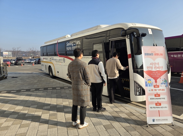 [뉴스다컴] 충청북도교육청 직속기관 교육문화원은 18일, 청사 주차장에 마련된 헌혈버스를 통해 이웃과 생명을 잇는 사랑의 헌혈 행사를 운영하며 연말 나눔을 실천했다고 전했다.