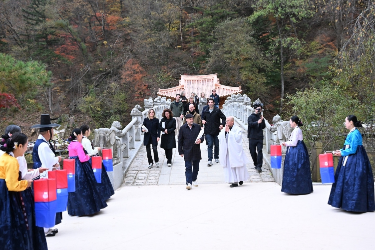 손님맞이 환영 인사는 10월 22일 16시 30분 오대산 월정사에서 한국예총 평창지회 국악협회(회장 김남정)가 참여하여 한복을 입고 귀한 손님 마중할 때 대문 밖에 내걸었던 청사초롱을 들고 전통미 가득한 환영 인사를 선보이며 세계 각국의 대표단에게 한국 전통의 정성과 환영의 마음을 듬뿍 전했다.