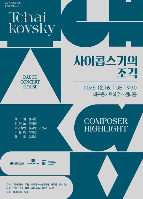 [뉴스다컴] 대구문화예술진흥원 대구콘서트하우스는 ‘컴포저 하이라이트’ 12월 공연을 통해 러시아 낭만주의 작곡가 차이콥스키의 작품 세계를 집중 조명한다.