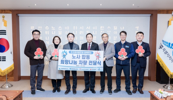 | ▲ 한국중부발전(주)세종발전본부(본부장 김민수)가 세종시청에서 노사합동 희망나눔 차량을 전달했다. |
