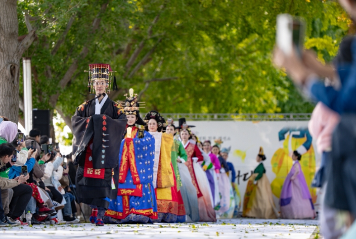 [뉴스다컴] (재)아산문화재단은 지난 11월 2일 곡교천 은행나무길에서 장애 예술과 전통 한복이 어우러진 특별한 패션쇼 '에이블 아트 · 명화 한복 패션쇼'를 성황리에 마무리했다.