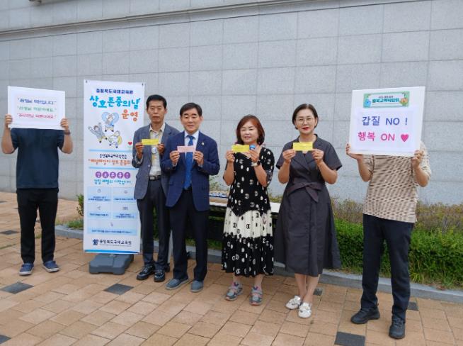 [뉴스다컴] 충청북도교육청 직속기관 국제교육원은 18일, 청렴 집중 주간을 맞아 공정과 소통의 청렴문화 전파‧확산 및 갑질예방‧상호존중 문화 정착을 위한 '갑질 버리고, 존중 키우고' 상호존중 캠페인을 전개했다.