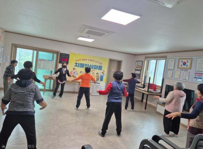 ‘노래 부르기 프로그램’과 음악에 맞춰 동작을 익히는‘라인댄스 프로그램’을 통해주민들이 함께 익숙한 노래를 부르며 기억력과 언어 기능을 자극하고, 즐거운 분위기 속에서 정서적 안정과 우울감 완화를 도모한다.