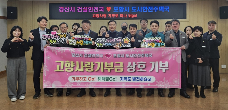 [뉴스다컴] 경산시는 9일 경산시 건설안전국 직원과 포항시 도시안전주택국 직원들이 총 700만 원의 고향사랑기부금을 상호 기부하며 연말 고향사랑기부 분위기 확산에 나섰다고 밝혔다.