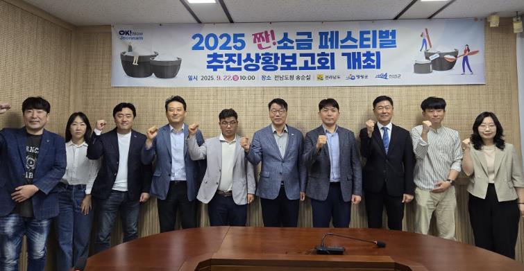 [뉴스다컴] 전라남도는 22일 도청 송순실에서 2025 소금박람회 ‘짠! 소금 페스티벌’의 성공적 개최를 위한 추진상황 보고회를 열어 준비상황을 점검하고 향후 보완 사항 등을 논의했다고 밝혔다.