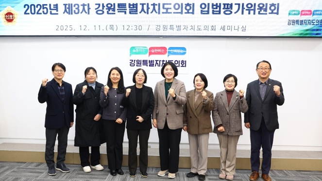 [뉴스다컴] 강원특별자치도의회는 12월 11일 오후 12시 30분, 도의회 세미나실에서 '2025년도 제3차 강원특별자치도의회 입법평가위원회' 를 개최했다.