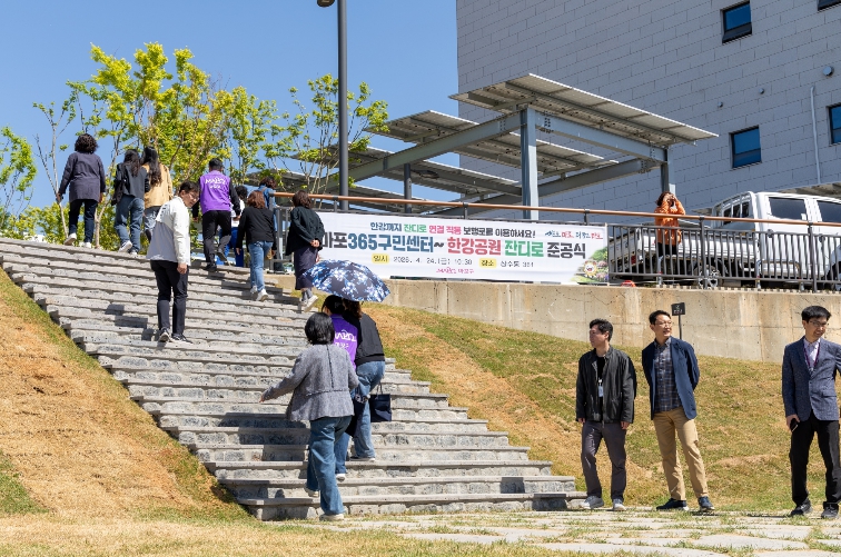 [뉴스다컴] 마포구는 마포365구민센터와 한강공원을 연결하는 녹색 보행로인 ‘잔디로’를 조성하고 4월 24일 오전 준공식을 개최했다.