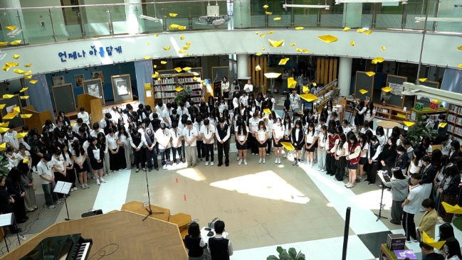 4월 16일 점심시간에 진행된 추모행사에는 전교생과 교직원이 함께 참여했다. 공연예술과 학생들의 추모 시 낭독을 시작으로 묵념, 추모 노래 연주, 추모 공연, 전교생 합창이 이어졌으며, 마지막으로 합창곡 ‘아름다운 사람’을 함께 부르며 행사를 마무리했다. 전교생의 목소리가 하나로 어우러지며 깊은 울림을 전하는 시간이 됐다.