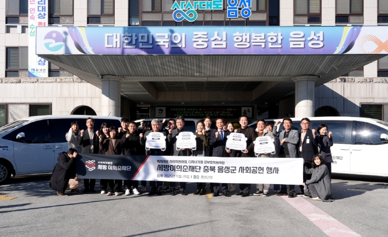 [뉴스다컴] 서울시 소재 세방이의순재단(이사장 이의순)에서는 28일 지역사회 복지 향상을 위한 차량 지원 사업 공모를 통해 음성군 사회복지기관 4개소(홍복양로원, 음성시니어클럽, 음성군장애인복지관, 음성향애원)에 승합차 각 1대씩 지원했다.