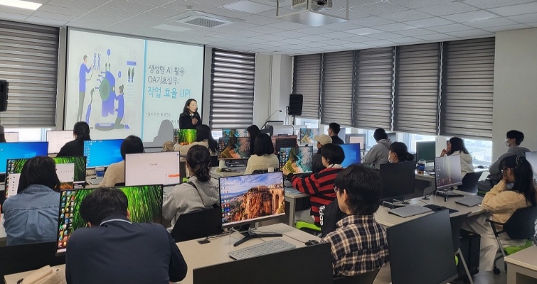 | ▲ 청년들이 AI를 활용한 OA정복 과정을 수강하고 있다. |