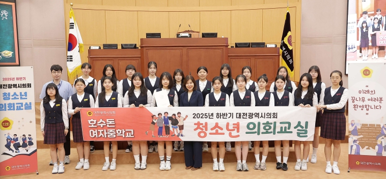[뉴스다컴] 호수돈여자중학교 학생들이 16일, 대전시의회(의장 조원휘)를 방문해 하루 동안 시의회의 운영 과정을 직접 체험하는 뜻깊은 시간을 가졌다.