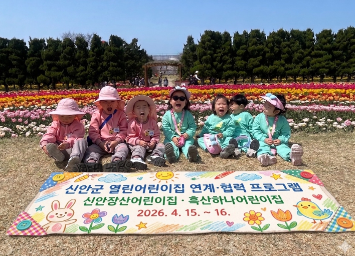 [뉴스다컴] 신안군 국공립 어린이집인 흑산하나어린이집과 신안장산어린이집이 4월 15일부터 16일까지 1박 2일 일정으로 임자면 ‘2026 섬 튤립축제’를 방문하고, 열린어린이집 간 연계·협력 공동 캠핑 프로그램을 운영했다.