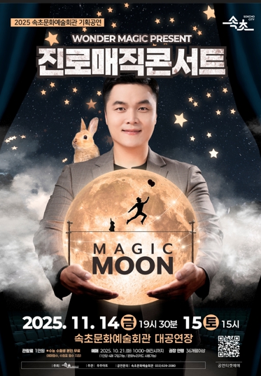 [뉴스다컴] 속초시는 오는 11월 14일 금요일과 11월 15일 토요일 이틀간 속초문화예술회관에서 최형배 마술사의 진로매직콘서트 MAGIC MOON을 선보인다.