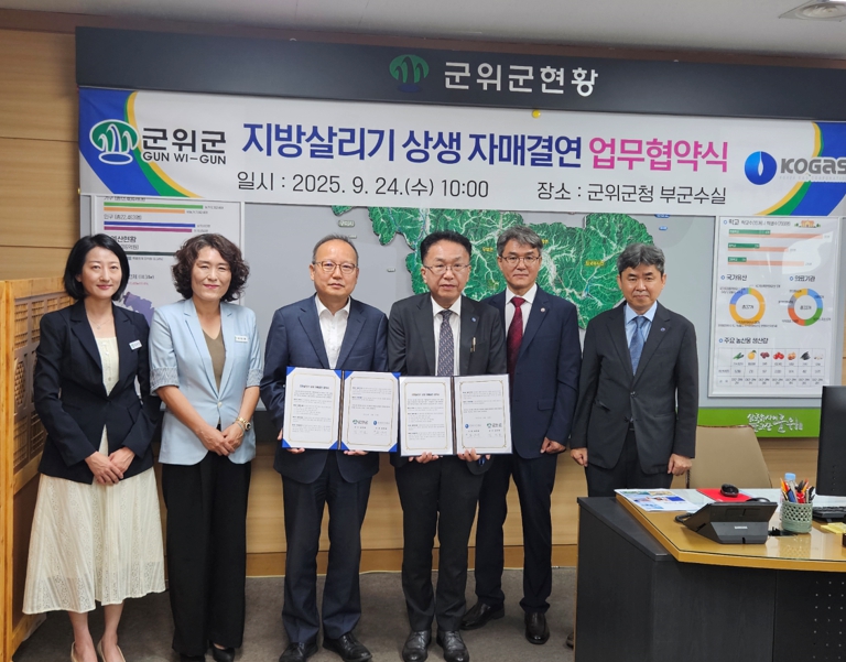[뉴스다컴] 군위군과 한국가스공사(사장 최연혜)는 9월 24일 수요일 오전 10시 군위군청 부군수실에서 지방살리기 상생 자매결연 업무협약을 체결했다. 지방살리기 상생 자매결연 업무협약은 비수도권 인구감소지역의 경제 활성화와 인구 유입을 위해 중앙정부와 공공기관, 지자체가 협력하는 공식 협약이다.
