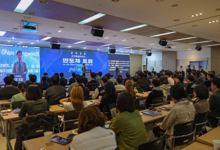 - “AI 시대, Chips Gangwon의 도전과 전략”이라는 주제로, 급변하는 AI 시대에 대응해 반도체산업 발전방향과 강원권 K-반도체 클러스터의 비전을 논의하는 자리로, 국내외 반도체 전문가, 기업, 연구기관, 대학 등 250여 명이 참석했다