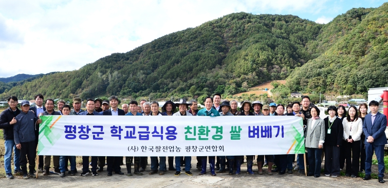 이번 행사에는 심재국 평창군수를 비롯해 쌀전업농평창군연합회원, 평창군농업기술센터 직원 등 60여 명이 참석했으며, 올해 군에서 생산된 친환경 쌀 25톤 전량은 평창푸드통합지원센터를 통해 관내 초중고등학교 학교 급식용으로 공급될 예정이다.