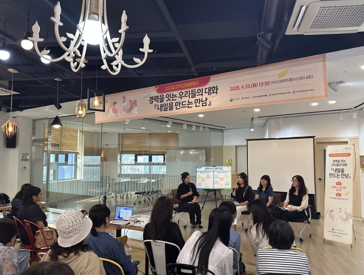 [뉴스다컴] 충남경제진흥원 내 충남광역여성새로일하기센터와 서산여성새로일하기센터는 9월 23일 서산고용복지+센터 6층 생활문화센터에서 경력단절 여성과 구직자 50여 명이 참여한 가운데 '2025년 경력단절예방 토크콘서트'제2회차를 성공적으로 개최했다.
