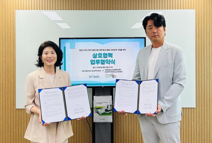 장은성 센터장은 “이번 협약을 통해 청주시 위기·취약 대상에 대한 통합 지원체계가 강화되길 바라며 앞으로도 지역사회 위기·취약 대상들에 대한 지원을 위해 노력하겠다”고 전했다.