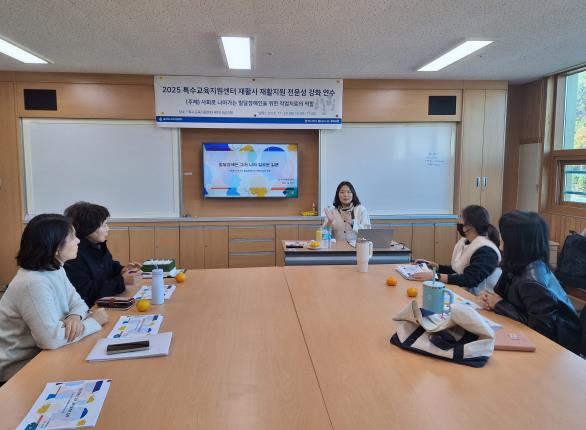 20일에는 보다아동발달센터 김미지 센터장을 초청해 특수교육 대상 학생의 기억력, 집중력, 시지각 기능 향상을 돕는 전략 훈련 등 인지 재활 역량을 높이는 감각통합 재활 지원 방안을 제시했다.