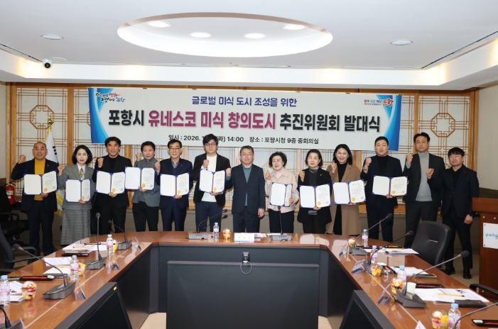 [뉴스다컴] 포항시는 27일 시청 중회의실에서 ‘포항시 유네스코 미식 창의도시 추진위원회’ 발대식을 개최하고, 유네스코 창의도시 네트워크(UCCN) 미식 분야 가입 추진을 위한 민·관·학 협력체계를 본격 가동했다.