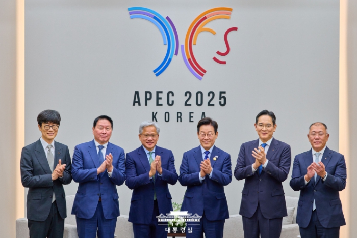 [뉴스다컴] 이재명 대통령은 10월 31일 오후 2시 경주 APEC 정상회의를 계기로 방한한 젠슨 황 엔비디아 대표를 만나, 대한민국 AI 인프라를 비롯한 생태계 전반의 혁신 방안에 대해 의견을 교환했다. 이 자리에는 삼성전자 이재용 회장, SK 최태원 회장, 현대차그룹 정의선 회장, 네이버 이해진 의장이 함께했다.